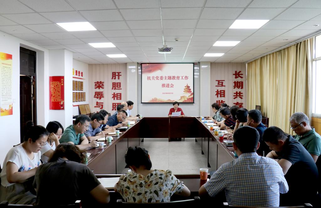 为深入推进学习贯彻习近平新时代中国特色社会主义思想主题教育,切实把学习成效落实到工作中、体现到行动上。6月21日,机关党委召开主题教育工作推进会,专题研讨主题教育相关文件,会议由党委统战部部长、机关党委书记夏瑞丽主持,机关理论学习中心组全体成员、各党支部负责人和统战部相关人员近30人参加会议。