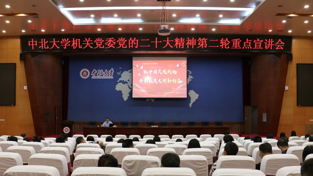 为深入学习贯彻党的二十大精神,进一步推动学习贯彻习近平新时代中国特色社会主义思想主题教育走深走实,按照校党委安排,5月17日,机关党委举办党的二十大精神第二轮重点宣讲会,邀请马克思主义学院杜刚副院长做题为《以中国式现代化开创人类文明新形态》的宣讲。会议由机关党委书记夏瑞丽主持,机关各部门全体党员现场聆听。