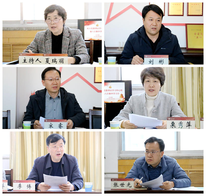 本次专题学习采取观看视频资料、党委委员领学、交流发言等形式展开。会上,大家一同观看了视频《习近平总书记在中共中央政治局第九次集体学习时的重要讲话精神》;机关党委委员、发展改革部部长宋睿领学习近平对宣传思想文化工作的重要指示;机关党委委员、招生与就业工作部部长李博领学习近平总书记关于“四下基层”的重要批示精神;此外,校党委常委、宣传部部长刘彬,机关党委委员、人才工作办公室(党委教师工作部)主任(部长)栗秀萍,机关党委委员、人力资源管理部副部长张世光,结合此次学习主题依次做了交流发言。