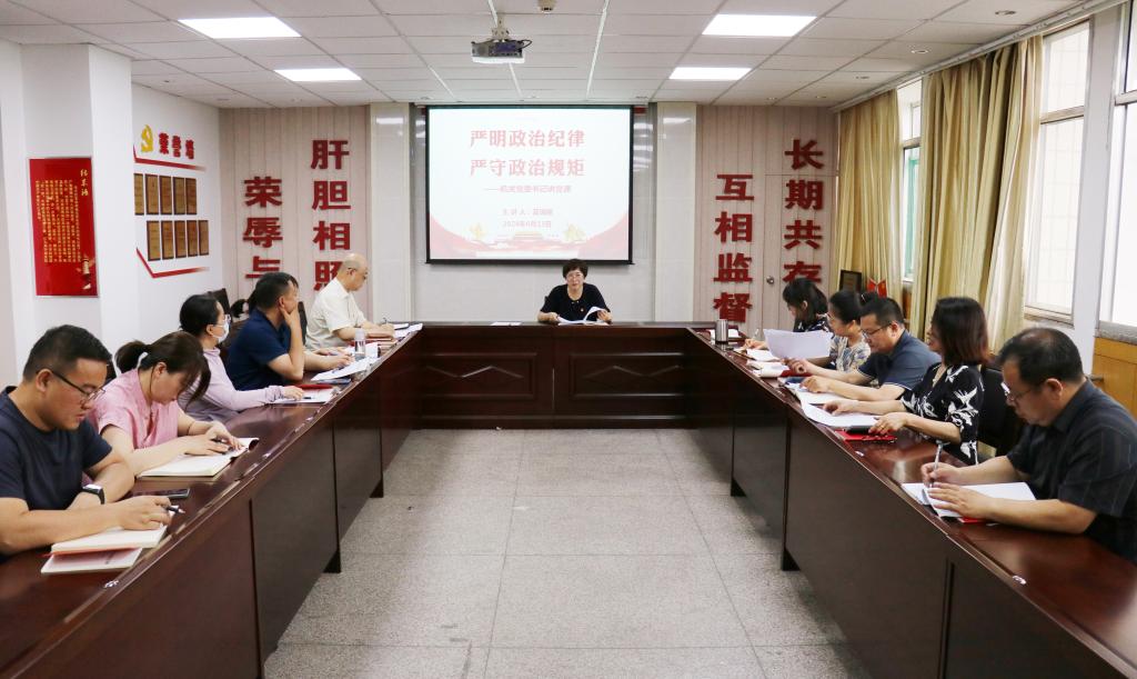 为深入学习贯彻习近平总书记关于党纪学习教育的重要讲话和重要指示精神,进一步增强党员干部学纪明纪知纪守纪的政治自觉、思想自觉和行动自觉。6月13日,校党委常委、机关党委书记夏瑞丽同志以《严明政治纪律严守政治规矩》为主题讲授了一次思想深刻的纪律党课,机关党委统战部国内交流合作部联合党支部、基本建设部党支部、工会党支部三个党支部全体党员参加学习。