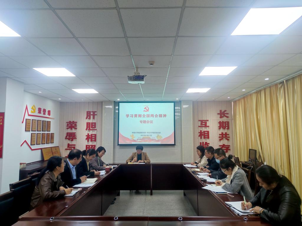 3月27日,统战部党支部和组织部党支部在德怀楼6层会议室召开了学习贯彻全国两会精神专题会议,会议由夏瑞丽书记主持,两党支部全体成员参加学习。