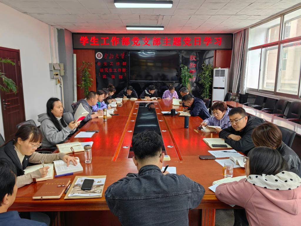 为进一步推进学习贯彻习近平新时代中国特色社会主义思想主题教育走深走实,5月6日,学生工作部党支部组织开展主题党日学习会,引领广大党员深入学习领悟贯彻新思想,推动工作更好发展,党支部书记李俊华主持学习会,支部全体党员参加学习。