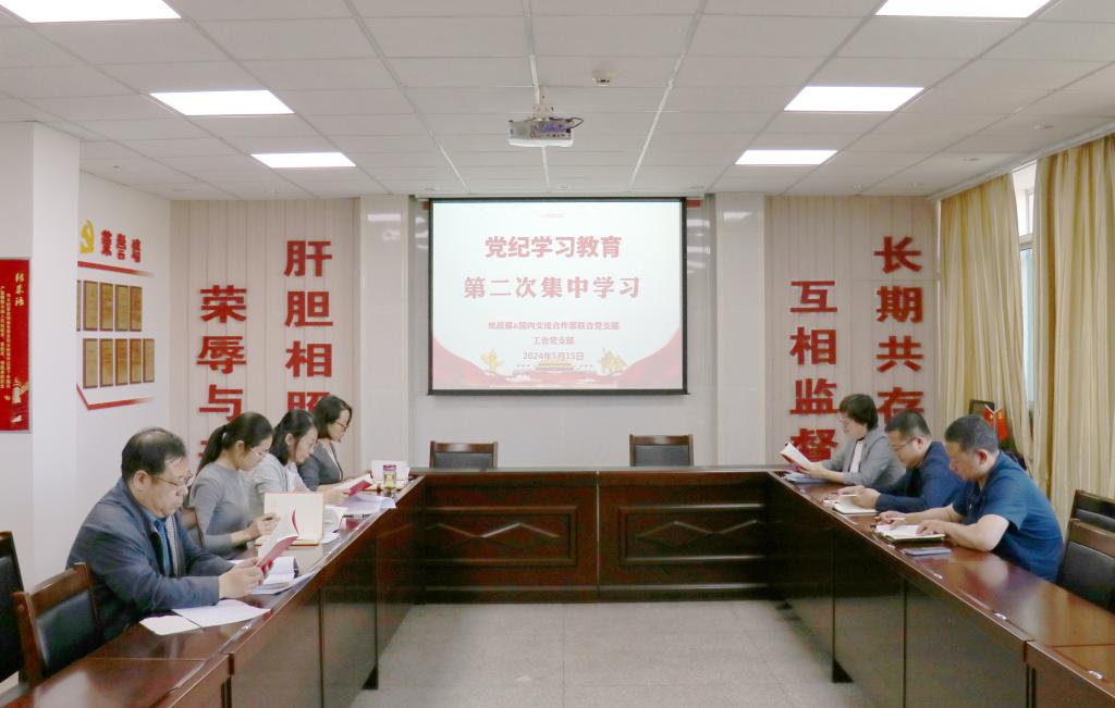 为深入学习贯彻习近平总书记关于党纪学习教育的重要讲话和重要指示精神,认真落实中共中央关于在全党开展党纪学习教育的要求,按照校党委安排,5月15日下午,机关党委统战部国内交流合作部联合党支部和工会党支部联合开展党纪学习教育第二次集中学习,两个支部全体党员参加了学习。