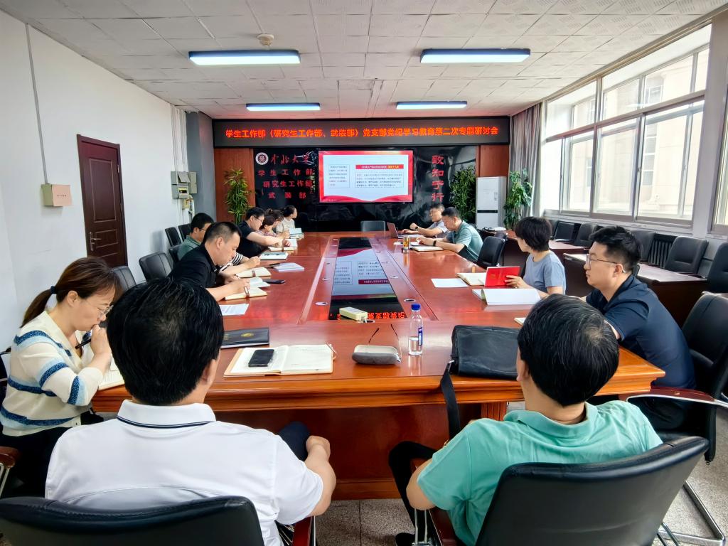 5月31日,学生工作部(研究生工作部、武装部)党支部于德怀楼211会议室召开党纪学习教育第二次专题研讨会,会议由学生工作部(研究生工作部、武装部)党支部书记顾宁主持,党支部全体同志参加。