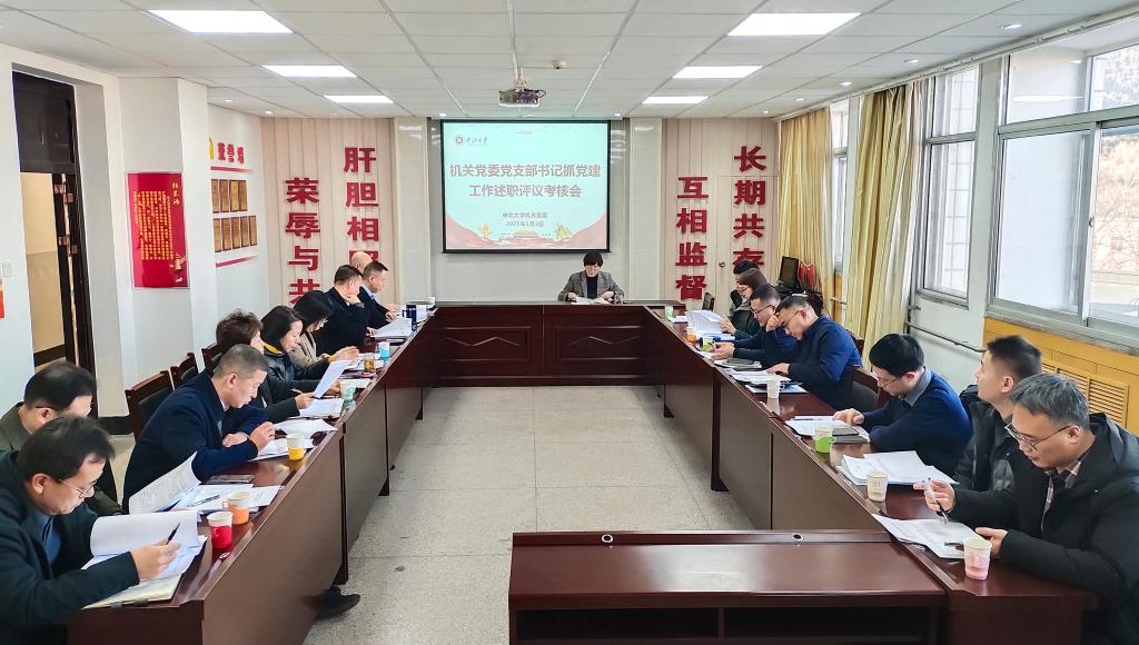 根据校党委组织部《关于做好2024年度基层党组织书记抓党建工作述职评议考核工作的通知》(党组〔2024〕7号)和《机关党委2024年度党支部书记抓党建工作述职评议考核工作方案》统一安排,1月3日下午,机关党委在德怀楼六层会议室开展2024年度党支部书记抓党建工作述职评议考核,会议由机关党委书记夏瑞丽同志主持,机关党委委员和机关各党支部书记参加。