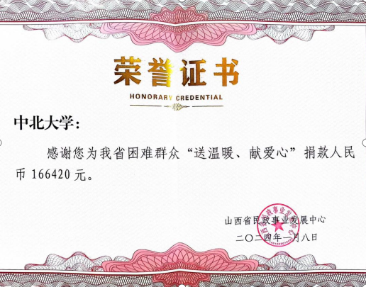 在各基层党委、党总支和直属党支部的积极动员下,各单位教职工积极响应,奉献爱心,共收到27个基层工会,1247名教职工捐助款额166420元。经公示后,校工会将捐款送交至山西省民政事业发展中心并接收了捐赠荣誉证书。
