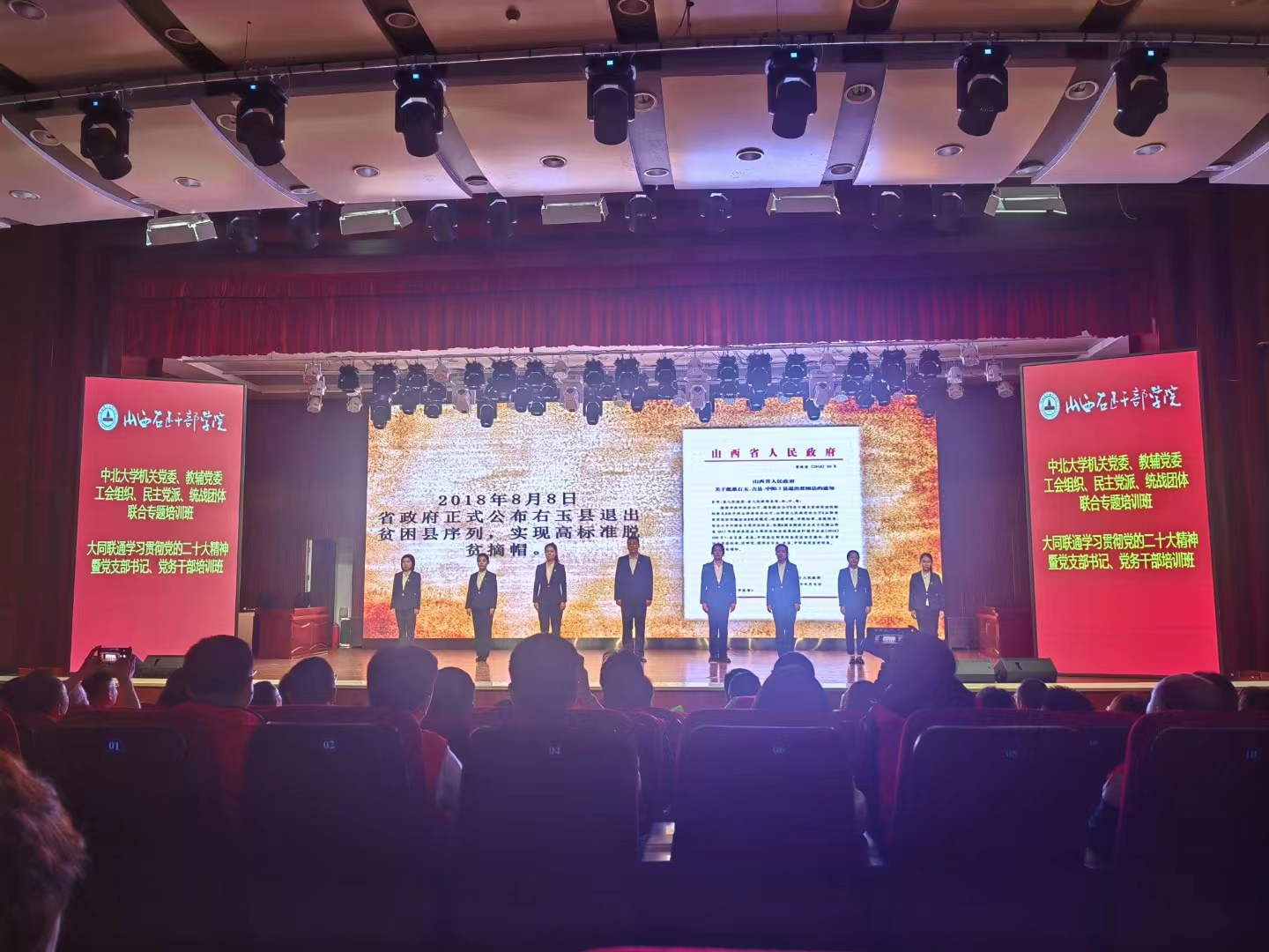 为深入学习贯彻党的二十大精神,深刻把握学习贯彻习近平新时代中国特色社会主义思想主题教育对机关工作提出的新使命新要求,更加全面理解“两个确立”的决定性意义,5月26日上午,中北大学机关党委举办的“学思想,强党性,重实践,建新功,奋力推进学校高质量发展”专题培训在右玉干部学院开班,校党委副书记曾建潮在专题培训班开班仪式上为全体学员作开班动员,右玉干部学院党委副书记、常务副院长、县委常委、组织部长刘玉峰致欢迎辞并为本次培训班授旗,机关党委书记、统战部部长夏瑞丽接旗。机关党委委员、党支部书记、党员代表近30人参加培训。