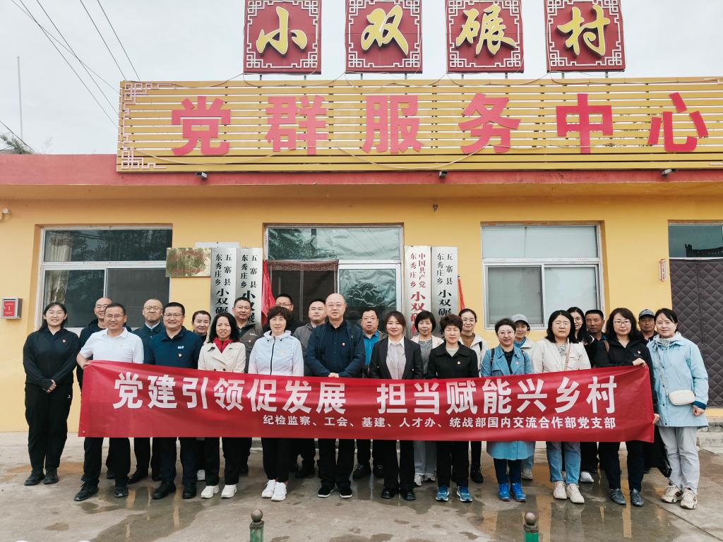 为深入学习贯彻2025年中央一号文件精神,强化党建引领乡村振兴,5月23日,机关党委纪检监察、工会、基建、人才办、统战部与国内交流合作部联合党支部赴忻州市五寨县东秀庄乡小双碾村与小双碾村党支部,开展“党建引领促发展,担当赋能兴乡村”联合党建活动,通过理论学习、红色教育等多种形式,深化校地合作赋能乡村振兴。